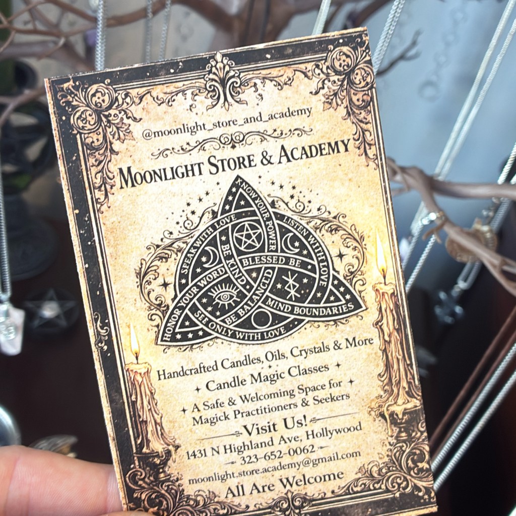 Moonlight Store & Academy is a spiritual and witchcraft shop located in Los Angeles, CA. It serves as both a retail space for magical tools and an educational center for spiritual practices.
